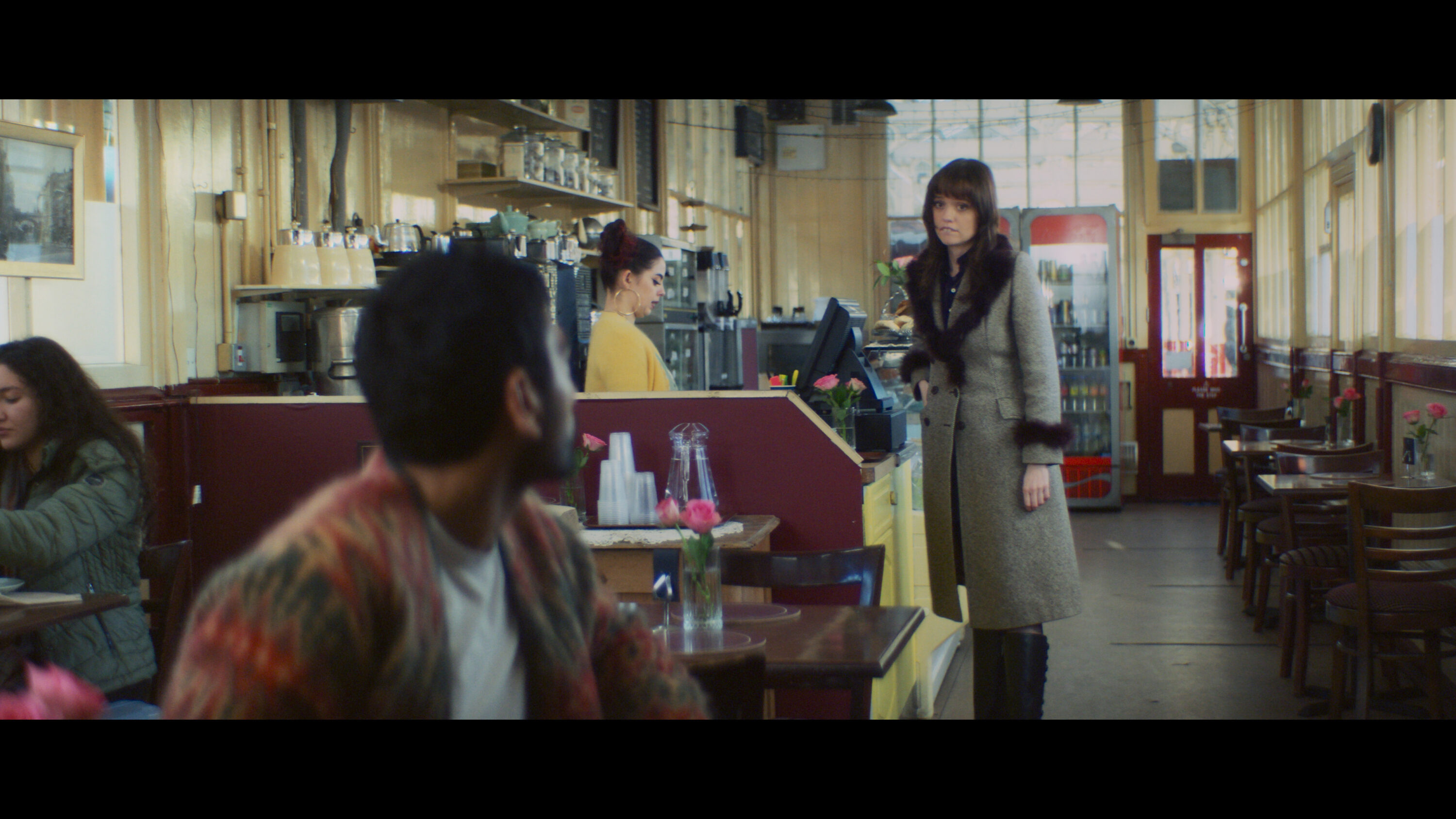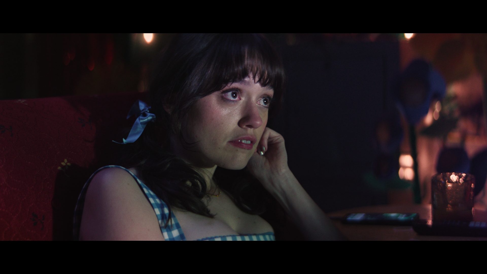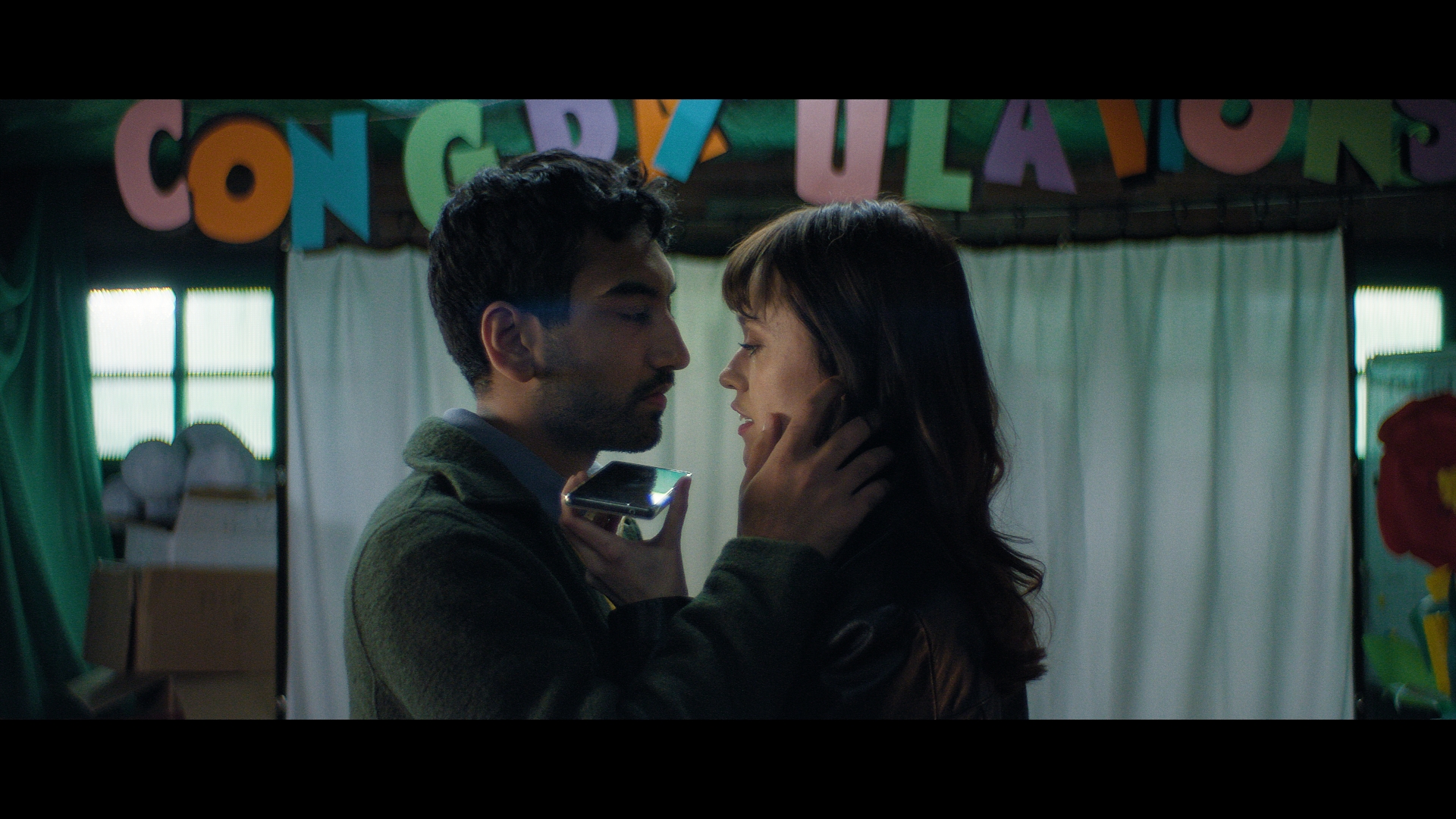 Each film club night had its own unique look, based on a movie, that was different from the rich tones of the real world. We really leant into the characteristics of film, adding grain, flares, etc to the anamorphic Alexa footage to give it a more cinematic feel.”